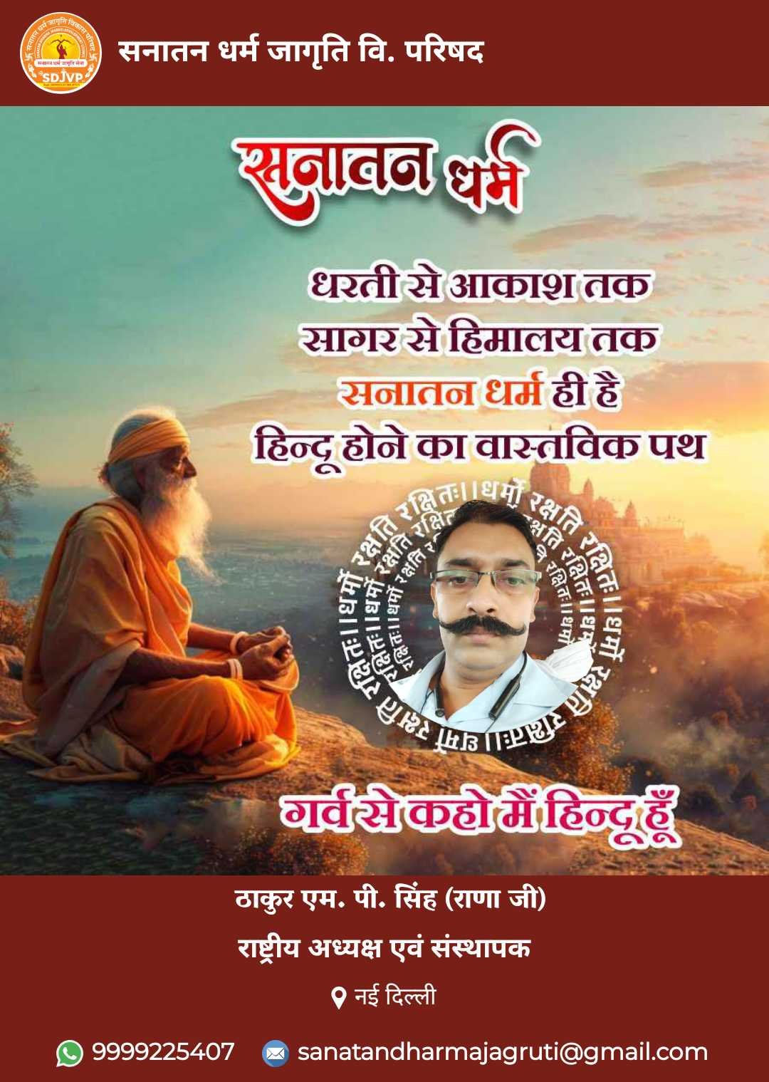 हमारी संस्था सामाजिक एवं धार्मिक एकता को मजबूत बनाने में सभी के सहयोग करने की प्रार्थना करती है, आप सभी सनातनी योद्धाओं से निवेदन है कि आप सभी हमारे संगठन में शामिल होकर सनातन धर्म, संस्कृति और संस्था को मजबूत बनाने में सहयोग करे।
