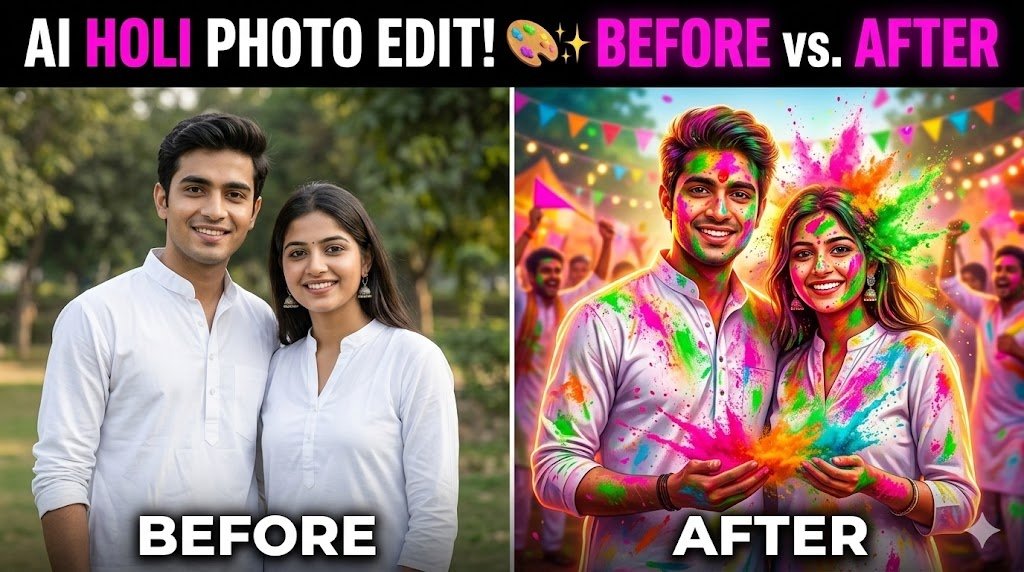 Holi Photo Editing AI Prompts – रंगों से भरी शानदार फोटो बनाने के लिए गाइड